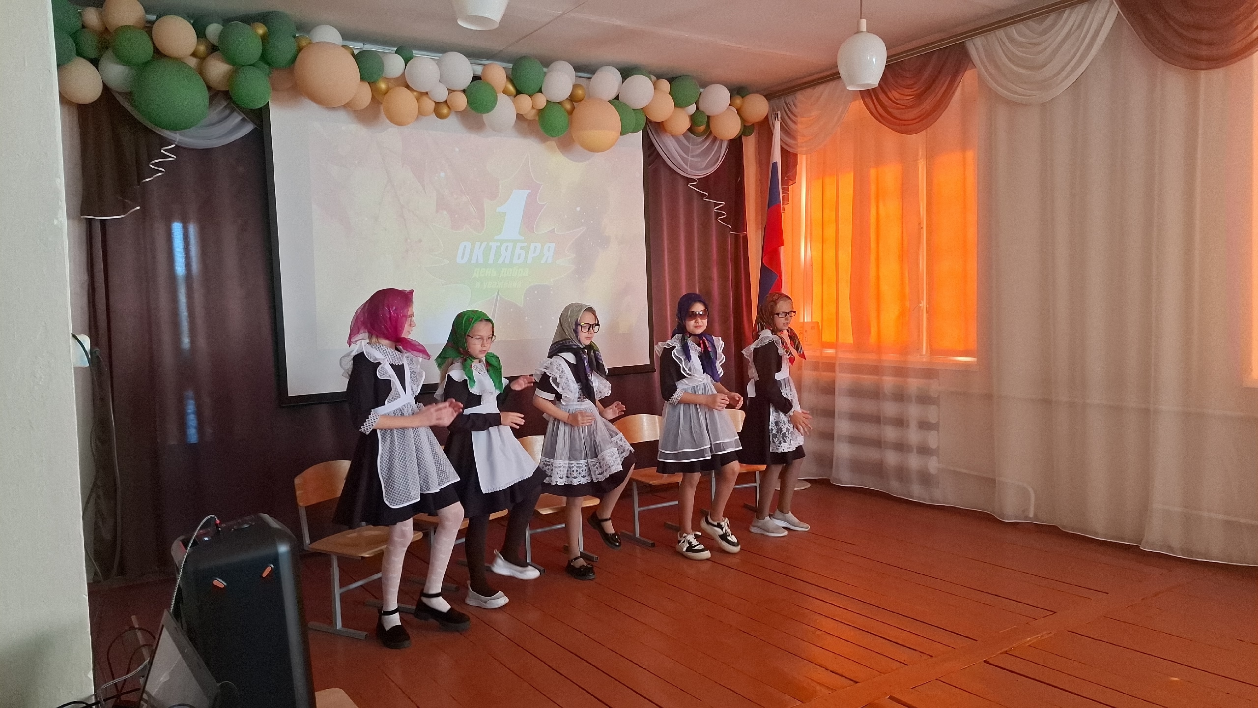 Стало доброй традицией встречаться тёплым осенним деньком 1 октября в актовом зале нашей школы по случаю празднования Дня пожилого человека. На этот раз активисты объединения "Первые в деле" порадовали гостей музыкальной программой "Угадай мелодия". Поделившись на 2 команды присутствующие гости угадывали любимые мелодии и фильмы. Во время музыкальной паузы наших бабушек и дедушек поздравляли ученики 2-4 классов. Они дарили гостям юмористические и музыкальные подарки в виде шуточных сценок ,трогательных стихов и веселых песен. Праздник прошёл на одном дыхании, по домашнему тепло и уютно.